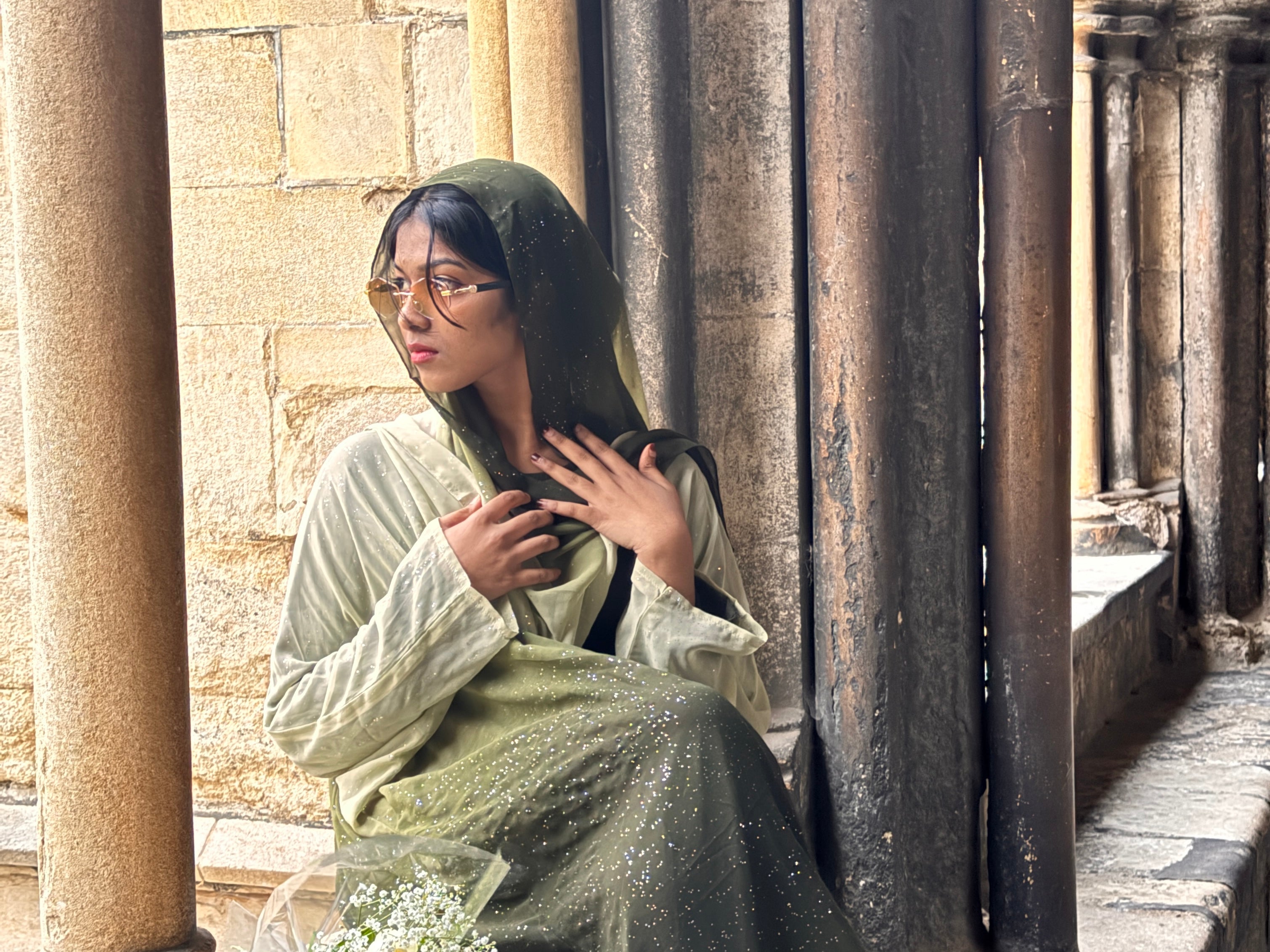 Premium shimmering abaya with matching hijab and 100% pollster slip dress.